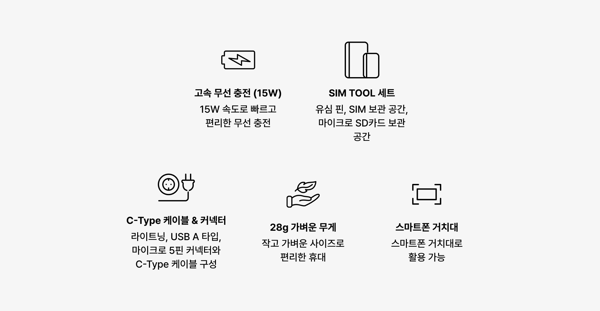 출장이나 여행에서 완벽한 휴대성을 자랑하며, 15W 고속 무선 충전 기능으로 빠르고 편리하게 사용할 수 있어요.