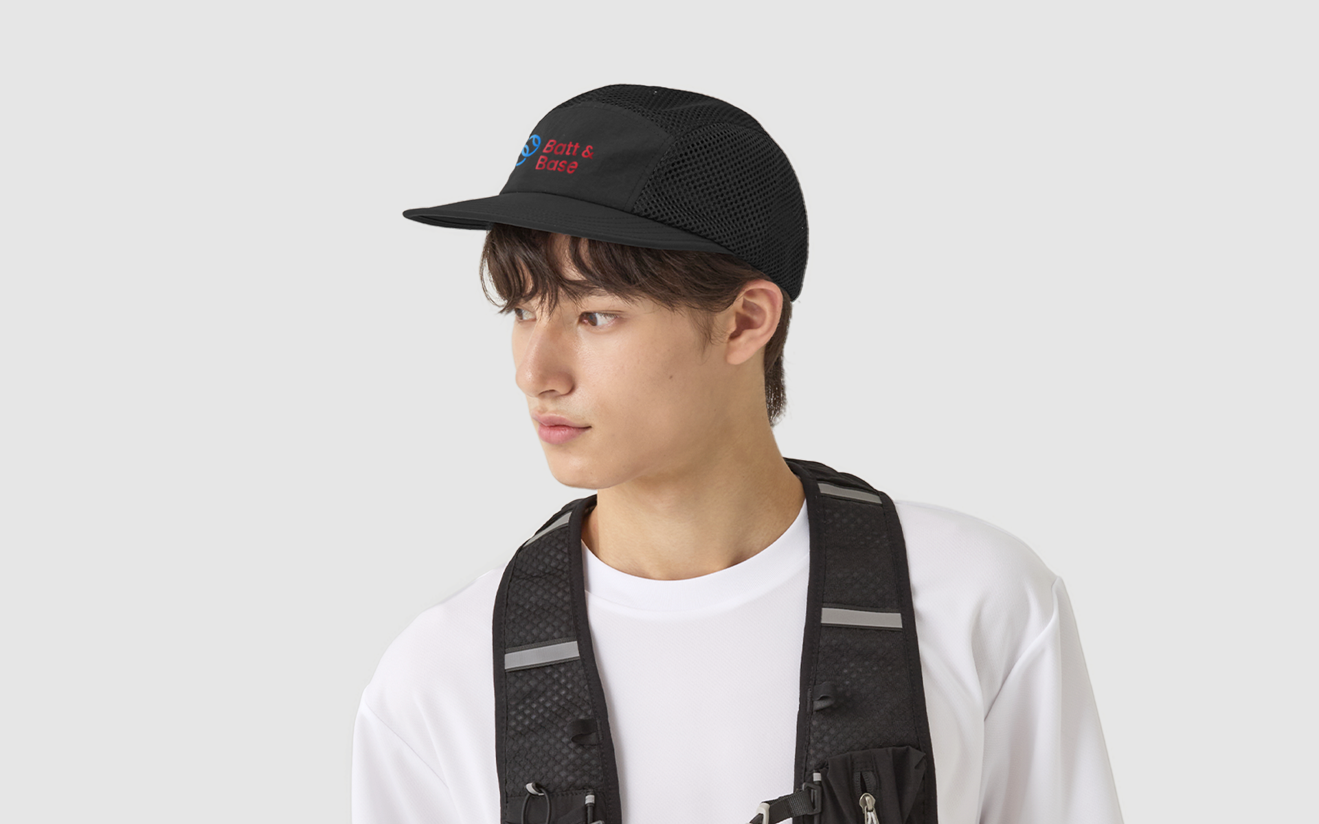 커스텀 라이트 러닝 볼캡을 착용한 모델, 크루 로고와 문구를 담아 팀워크와 소속감을 높여주는 맞춤 제작 러닝 모자