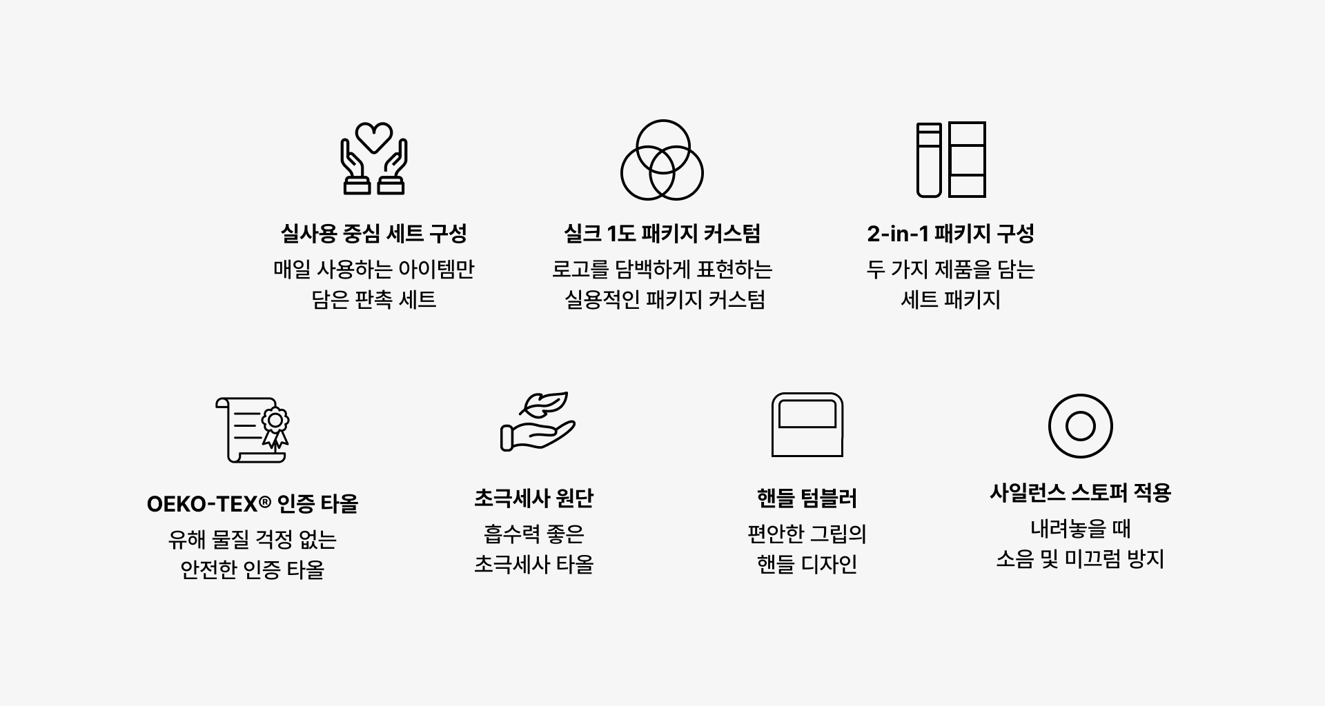 텀블러·타올·박스를 하나의 구성으로 묶어 행사와 웰컴 키트, 기념 선물로 활용하기 좋으며,