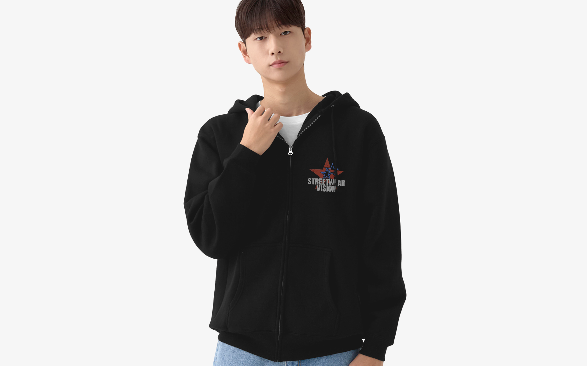 핏을 탄탄하게 잡아주는 면·폴리 혼방 원단과 더블 스티치 마감으로 오래 입기 좋은 스탠다드 핏 후드집업이에요.